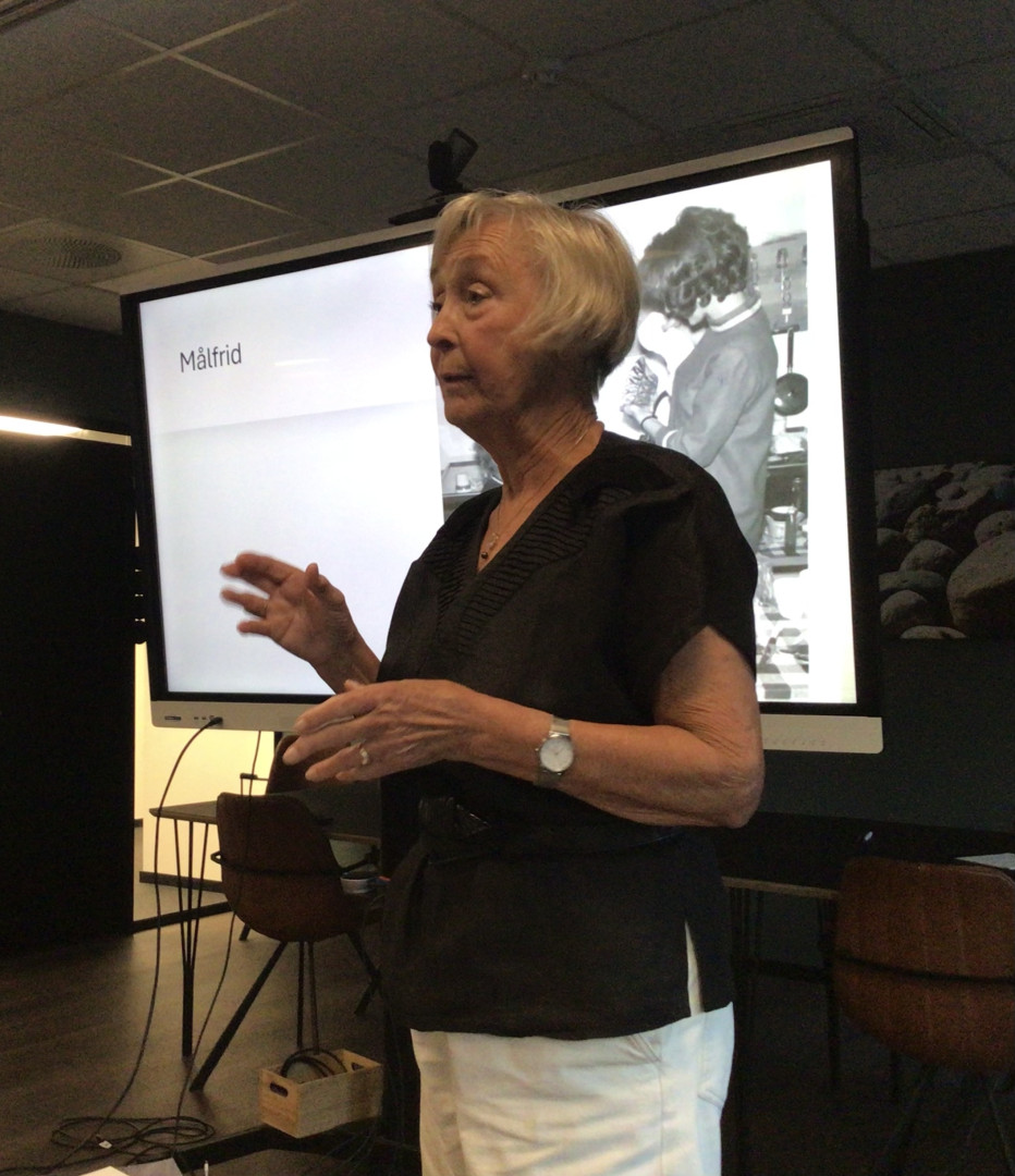 I Målfrids senior-ego-foredrag ble vi enda mer klar over hvilken ressurs hun er for klubben. Hennes yrkesaktive liv i kultur og ledertrening imponerte oss, og hun avsluttet med sønnens flotte karakteristikk av Målfrid som mor.